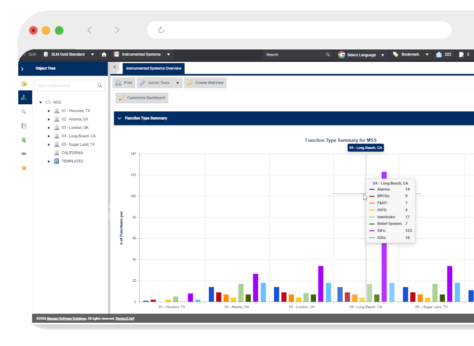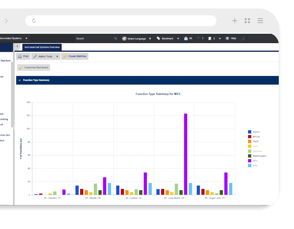 We focused on making an interface as easy to use as it is on the eye. Stunning new visualizations and an interface engineered to provide the ultimate user experience. View your Safety Instrumented Systems, Safety Instrumented Functions, and Barrier Management Systems and their components in our interactive, graphical layout.