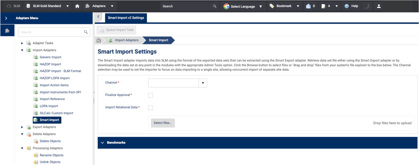 Accelerate implementation and data management by importing large datasets directly into the SLM® System. The Adapters module supports bulk .CSV uploads for any object in the database, using preformatted Smart Adapters to simplify data mapping and ensure accurate imports. This streamlined approach reduces manual data entry, improves consistency, and enables faster onboarding of process safety information.